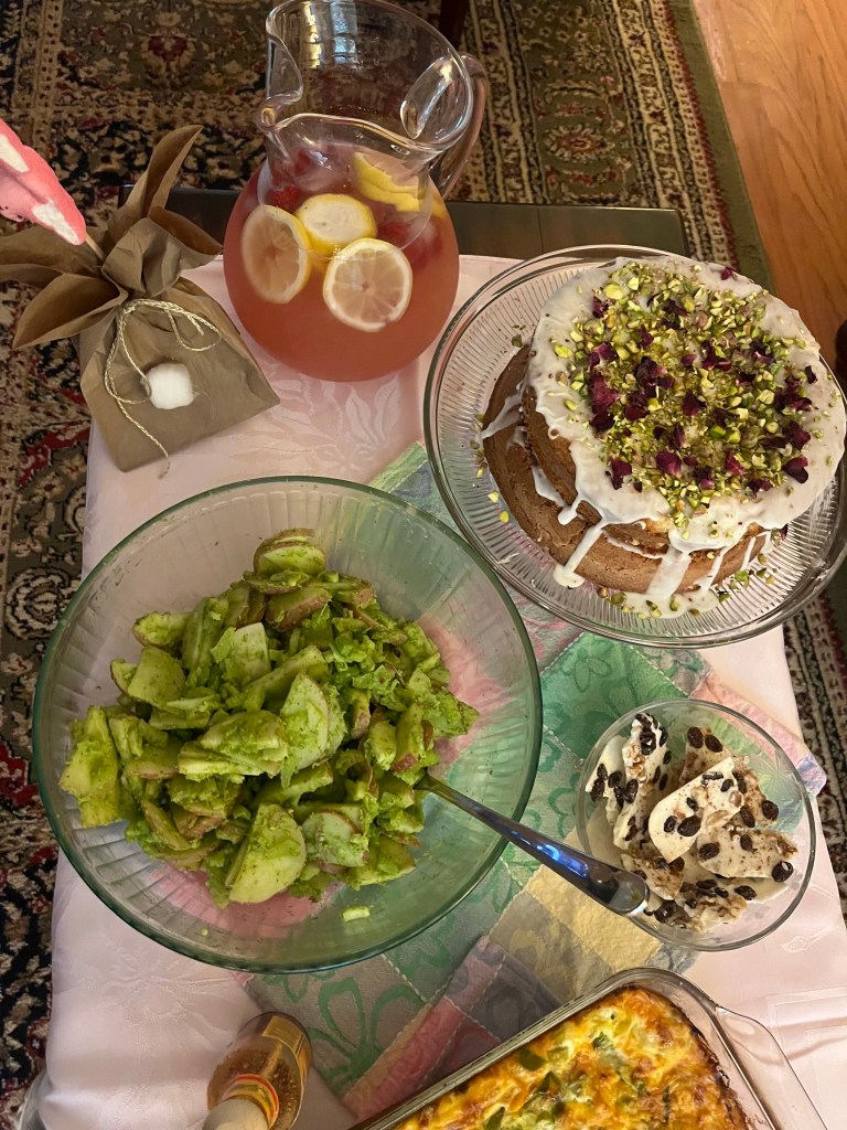 Easter bunnies, Grand Prix racing and some backyard fun highlighted a beautiful springtime celebration. Herbed Potato Salad, Easter “Carrot” Poppers, a vegetarian breakfast casserole and a refreshing Raspberry Bunny Fizz made for the perfect brunch. In a nod to the Grand Prix, dessert was a beautiful Persian Love Cake. And yes, I still make my adult children Easter baskets!