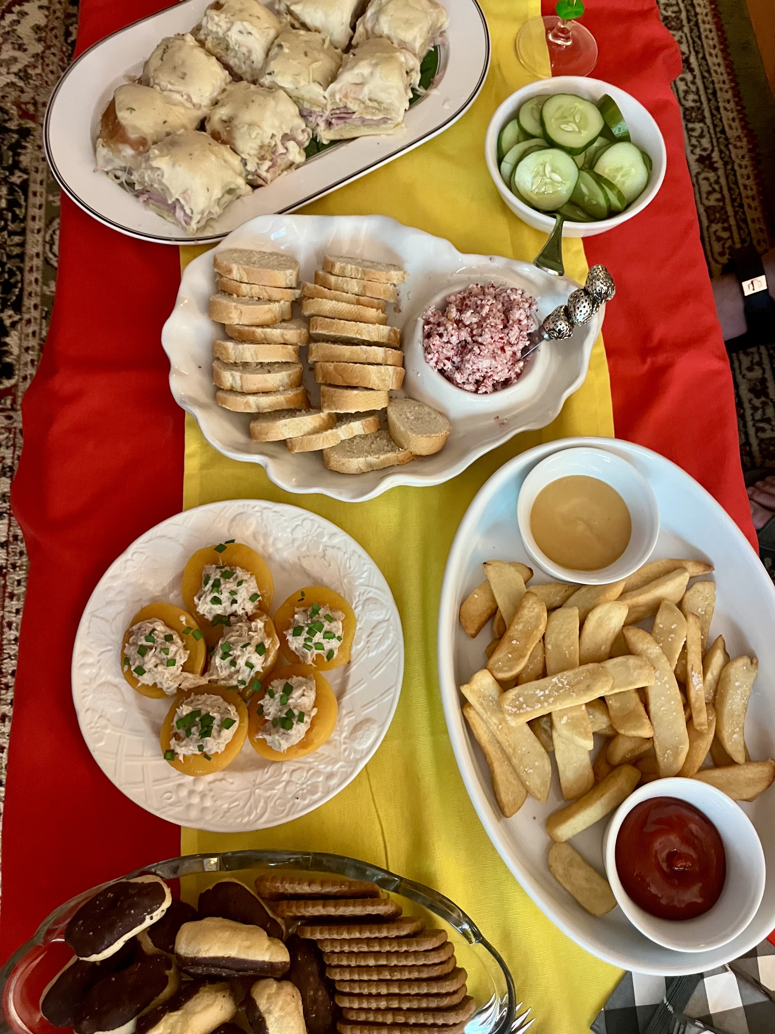 Our Belgian Grand Prix viewing party was filled with the warmth of family, the buzz of friends, and the irresistible aroma of Belgian dishes. We served Croque Monsieur Sliders, Tuna Peaches (Pêches au thon), Radish Butter on baguette, crispy frites and a refreshing cocktail. The biggest celebration wasn’t on the track, it was in welcoming a brand-new baby girl to our crew, Lennon Elizabeth. Between bites and podium predictions, everyone took turns holding the newest little racing fan, while Cora, our Golden Pei, clearly decided she had found her new best friend. Between the food and loving on sweet Lennon, it was a Grand Prix we’ll never forget.