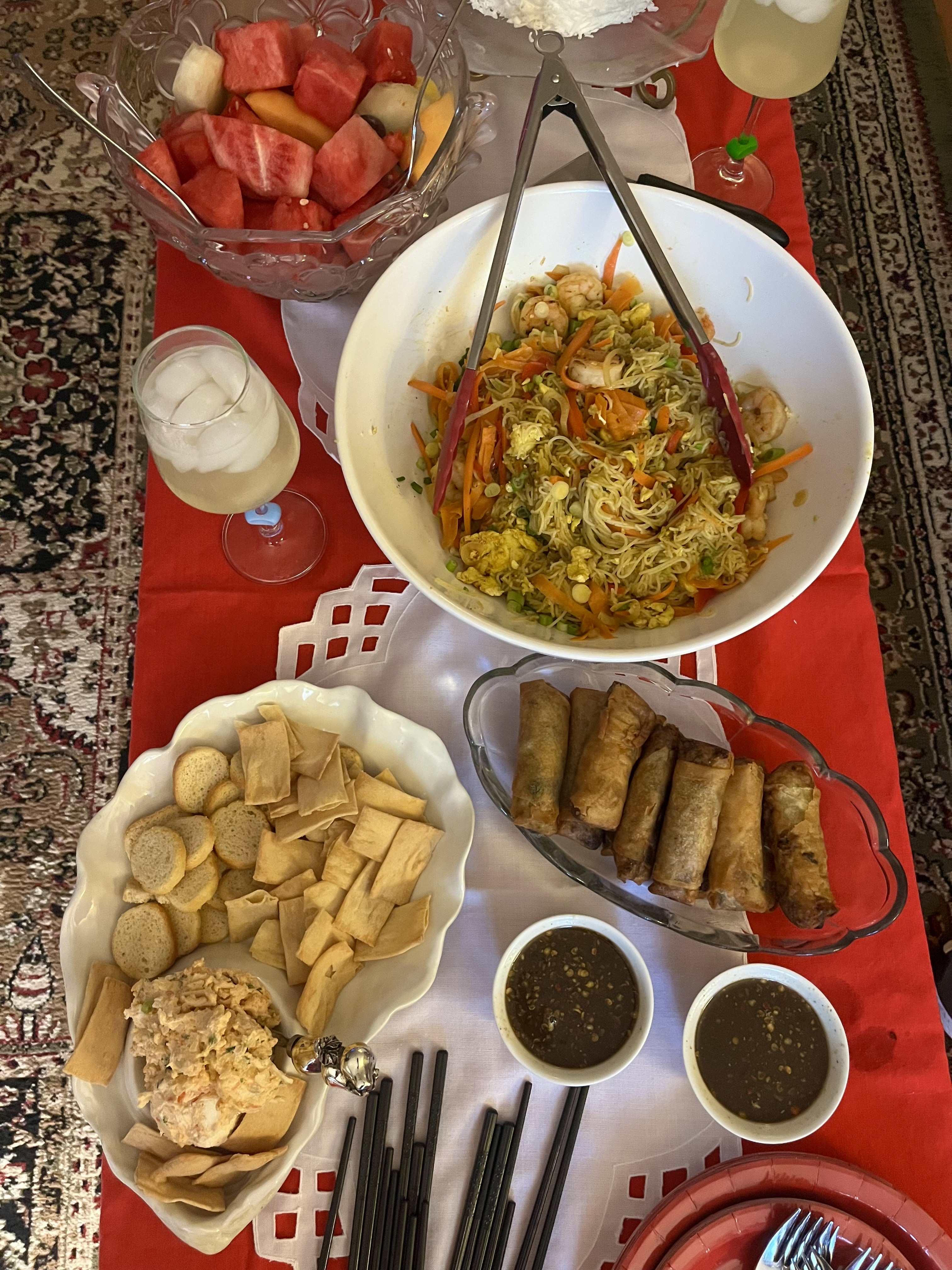 Rich flavors, bold spices and incredible food inspired by the region, made our Singapore Grand Prix party a hit. We dined on Singapore Rice Noodles, Spicy Crab Dip, spring rolls, fresh fruit and a stunning Pandan Coconut Cake, all accompanied by refreshing lychee cocktails. While the race itself, on a circuit that makes passing almost impossible, was uneventful, we more than made up for it with great company and plates of delicious Singaporean favorites.