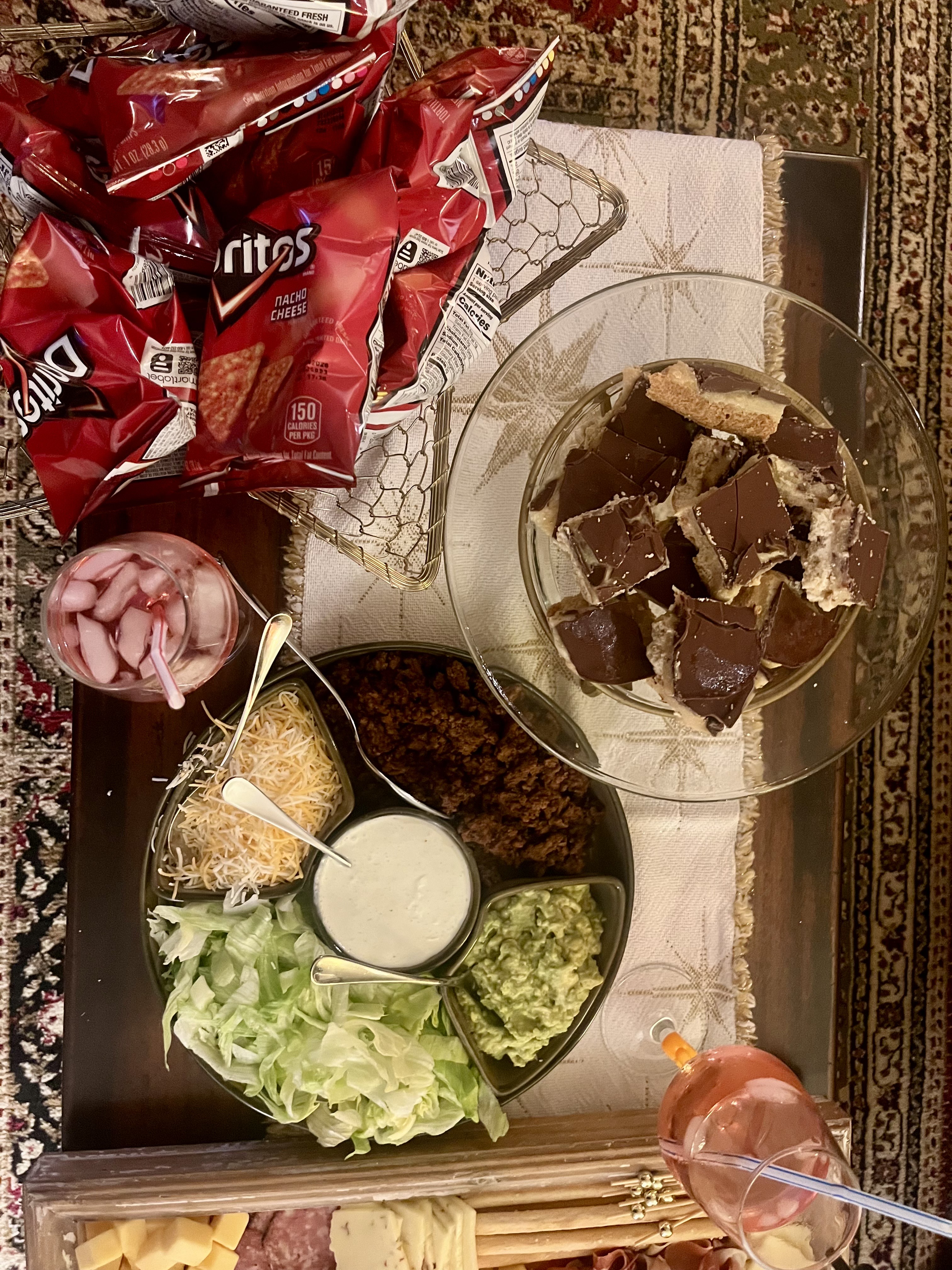 Our Las Vegas F1 Grand Prix party was a full-on sleepover, complete with a delicious charcuterie board and plenty of late-night “drunk food,” like Walking Tacos and Spring Rolls, to keep the energy high. We finished with Millionaire Shortbread and a “choose your own adventure” vodka cocktail. The race was full of Vegas-style chaos. When we finally crashed and awoke the next morning, it felt like a plot twist to discover the standings had shifted dramatically overnight. It was the perfect mix of excitement, good food, and unpredictable F1 action.