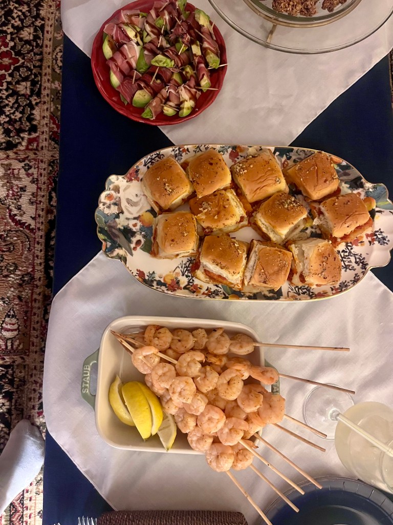 After a long winter’s wait, the F1 2026 is off and running, with the verdict on the new 2026 cars still to be determined. Nevertheless, the family celebrated with a sleepover so we could watch in real time, preceded by a viewing of Marty Supreme, our last unseen Oscar nominee. All kinds of Australian dishes were enjoyed including Shrimp on the Barbie, Chicken Parm Sliders (who knew Chicken Parm is a beloved Aussie treat?), Prosciutto-wrapped Avocado, Chocolate Crackles and also popcorn for our movie viewing. Great fun to begin the season.